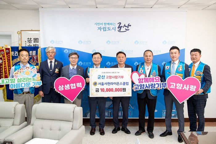 군산시는 12일 지역소멸 대응 등을 위해 추진하는 고향사랑기부제에서울 서현라이온스클럽 회원들이 1,000만원을 기탁했다고 밝혔다.