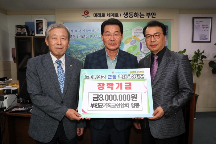 부안군기독교연합회(회장 최기훈목사)는 지역인재 육성과 교육환경 개선에 동참하고자 장학금 300만원을 기탁했다.