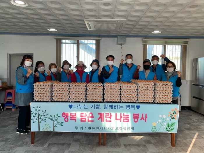 김제시 진봉면 지역사회보장협의체(공공위원장 박광국, 민간위원장 최준영)는 18일 관내 저소득 취약계층을 위해‘행복 담은 계란 나눔 사업’을 펼쳤다.