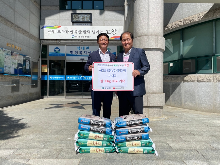 고창군 애향운동본부 성내지회(지회장 이재혁)가 지난 18일 성내면사무소를 찾아 지역내 어려운 이웃에 전달해달라며 쌀 10㎏ 10포를 기탁했다고 밝혔다.