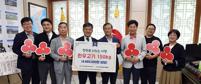 (사)전국한우협회 김제시지부(지부장 정기섭)는 21일 관내 저소득 가정에 전달해 달라며 한우불고기 150kg (460만 원 상당)을 김제시에 기탁했다.