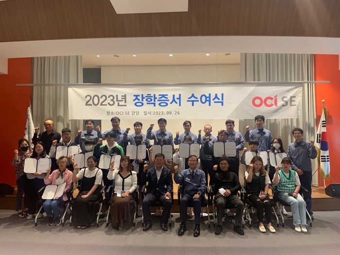 OCI SE㈜는 전기, 증기, 냉난방(보일러)를 취급하는 업계 최고의 친환경 열병합발전 시스템을 갖춘 회사로, 지난 2016년부터 매년 발전소 주변 지역 학생들을 대상으로 장학사업을 진행해 왔으며 8년간 636명 학생에게 8억 2천여만원의 장학금을 지원하고 있다.