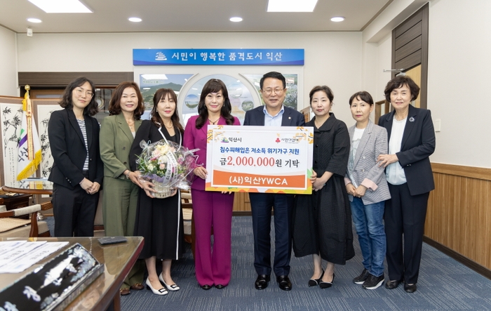 (사)익산YWCA(회장 이진주)는 지난 4일 익산시청을 방문해 침수피해를 입은 저소득 위기가구를 위해 성금 200만원을 기탁했다.