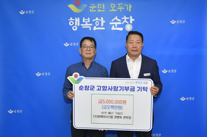 순창군은 최근 순창 출신 ㈜엔케이시스템 권병욱 본부장이 고향사랑기부금 개인 최고액인 500만원을 기탁했다고 12일 밝혔다.