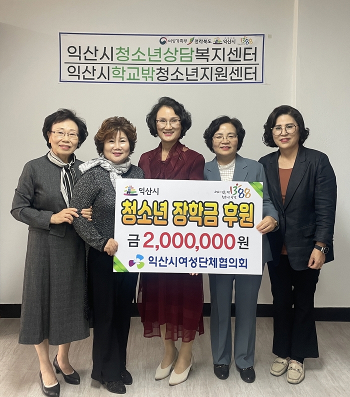 익산시여성단체협의회(회장 강성자)는 지난 16일 익산시청소년상담복지센터를 방문해 지역의 학교 밖 청소년과 저소득가정의 청소년들에게 전달해달라며 200만원을 기탁했다.