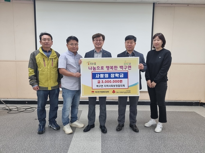 김제시 백구면 지역사회보장협의체(공공위원장 김정곤, 민간위원장 장승환)는 3일, 관내 저소득층 학생 10명에게『사랑의 장학금』 300만 원을 전달했다고 밝혔다.