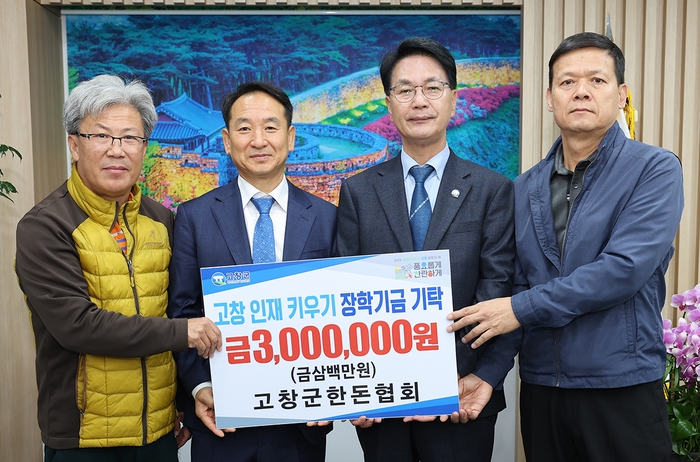 고창군한돈협회(협회장 이동완)가 8일 (재)고창군장학재단에 장학기금 300만원을 기탁했다.