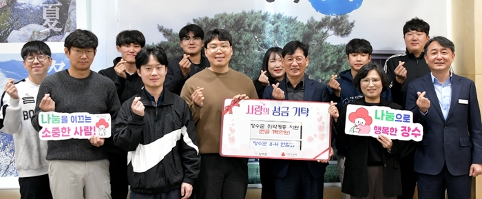 청년농업인 모임인 장수군4-H연합회(회장 박재룡) 회원 10여명은 9일 장수군청을 방문해 지역 내 어려운 이웃을 위해 사용해달라며 성금 100만원을 기탁했다.
