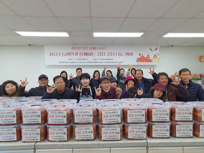 이번 프로그램은 전북농아인협회장수군지회 농아인 10명과 장수군장애인연합회, 시각장애인연합회 직원들이 함께 모여 장수관내 장애인들을 위해 겨울철 김장 김치를 담그고 장애인 50가정에 전달 할 예정이다.