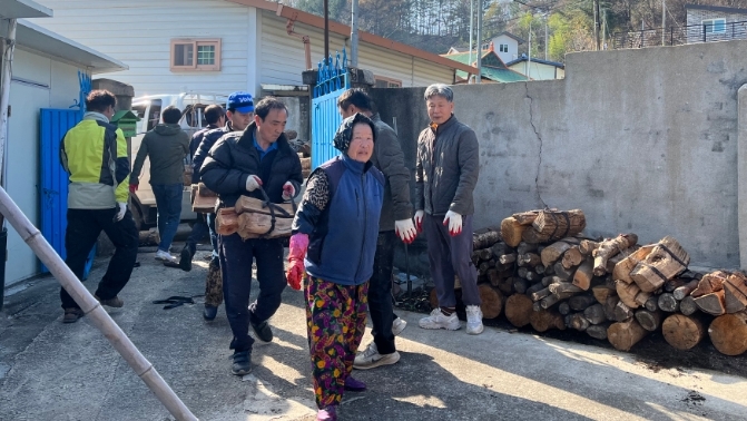 이 날 전달식은 해당 가구에 3톤 이상의 땔감을 배달하며 구슬땀을 흘렸다.