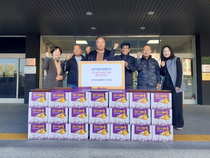 김제시야생동식물피해방지단(단장 양희용)은 17일 관내 저소득 가정에 지원해 달라며 배도자리즙 30봉 80박스(400만 원 상당)를 김제시에 기탁했다.