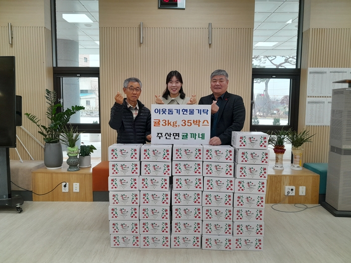 부안군 주산면은 지난 16일 관내 ‘귤까네’가 어려운 이웃을 돕기 위해 감귤 100kg를 기탁했다고 밝혔다.