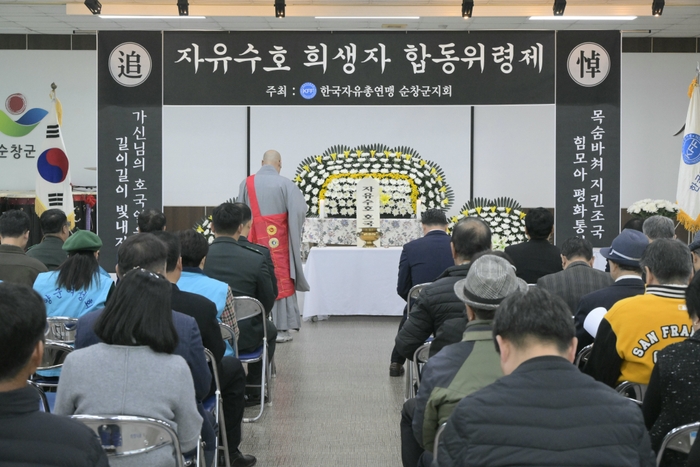 한국자유총연맹 순창군지회(회장 손충호)는 17일 순창읍 행정복지센터에서 자유민주주의 체제 수호를 위하여 희생된 민간인 호국영령을 추모하는‘제43회 자유수호희생자 합동위령제’를 거행했다.
