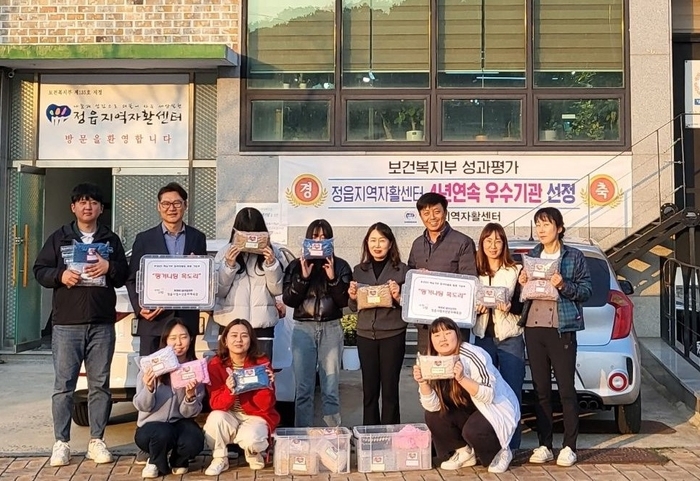 정읍시 청소년문화체육관 봉사동아리 체리쉬 회원들이 지난 15일 정읍지역자활센터를 방문해 자립 활동 참여자들에게 직접 만든 핑거니팅 목도리 30개를 전달했다.