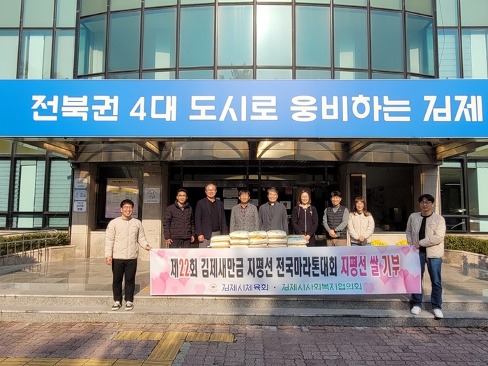 김제시체육회(회장 한유승)는 지난 8일에 개최한 제22회 김제새만금 지평선 전국마라톤대회를 성공적으로 마무리하고, 지평선 쌀 기념품을 지난 15일, 김제사회복지협의회에 기부했다.