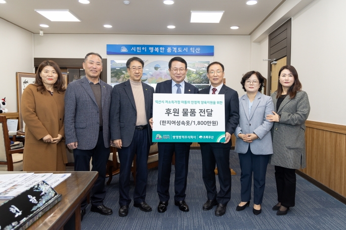 초록우산 어린이재단 익산후원회(회장 유기달)와 전북본부(본부장 구미희)는 20일 쌍영방적(주)김강훈 대표와 함께 익산시청을 방문해 1800만원 상당의 물품을 기탁했다.