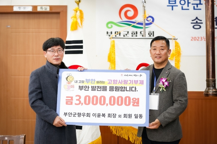 부안군은 지난 2일 부안군향우회 청년국 송년의밤 행사를 갖고 이윤복 회장을 비롯한 회원들이 고향사랑기부금 300만원을 기탁했다고 밝혔다.