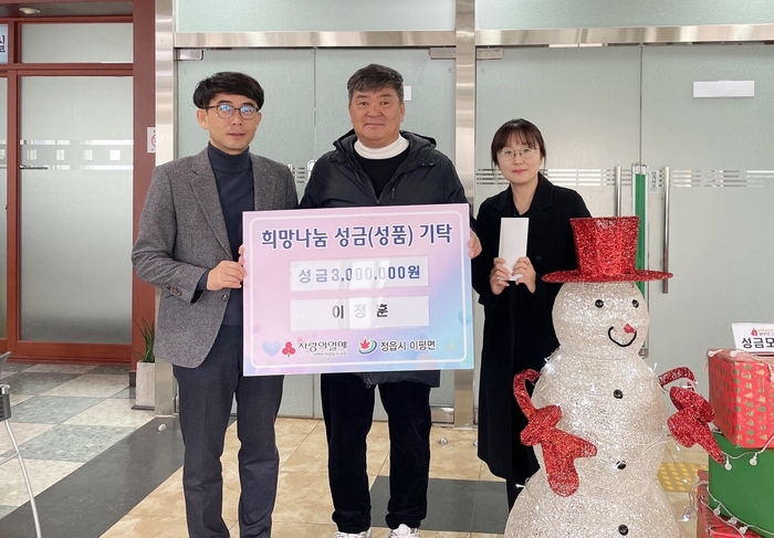 정읍시 이평면 파란하늘 농장 이정훈 대표는 지난 1일 이평면사무소를 방문해 어려운 이웃을 위해 써달라며 성금 300만원을 기탁했다.