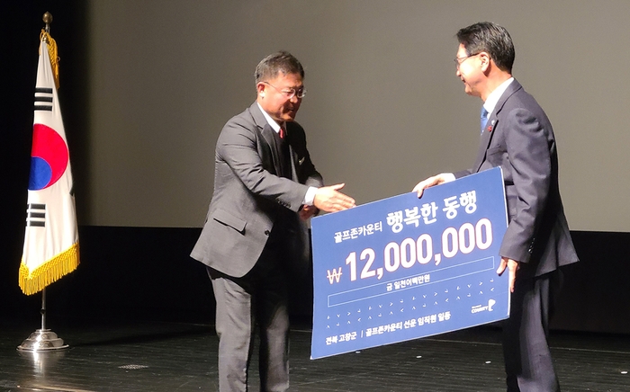 ㈜골프존카운티 선운(대표 서상현)이 지난 5일 개최된 ‘2023 자원봉사자대회에’서 고창군에 이웃돕기 성금 1200만원을 기탁했다.