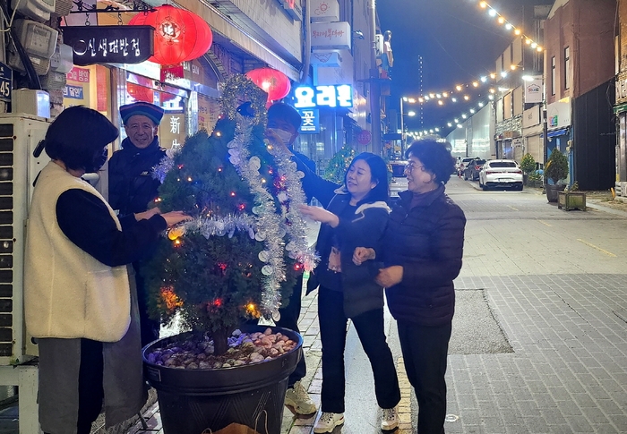 지난 5일 문화예술의거리 주민협의회 20여 명은 문화예술의거리 내 측백나무 대형 화분 40여 개에 크리스마스 전구 등을 장식했다.