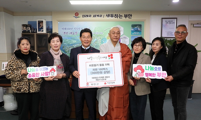 대한불교 조계종 개암사(주지 종고스님)에서 지난 8일 부안군청을 방문해 연말을 맞아 관내 어려운 이웃들을 위해 라면 100상자(300만원 상당)를 기탁하였다.