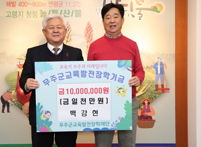이에 무주군교육발전장학재단 황인홍 이사장(무주군수)은 “아이들에게 투자해주시는 대표님의 마음에 존경을 표한다”라며 “그 마음 헛되지 않도록 무주군 인재 양성을 위해 최선을 다하겠다”라고 전했다