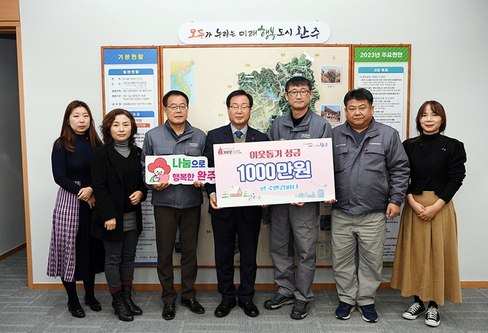 19일 완주군에 따르면 한국앤컴퍼니는 자동차용 배터리 제조업체로, 2021년도 부터 매년 이웃돕기 성금을 완주군에 전달해 오고 있다.