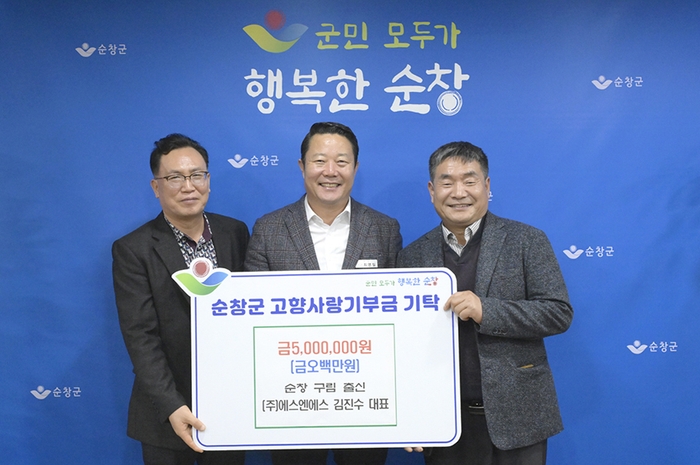 순창군 구림면 출신 기업인 ㈜에스엔에스 김진수 대표가 20일 순창군 고향사랑기부 최고액인 500만원 기부자에 이름을 올렸다.