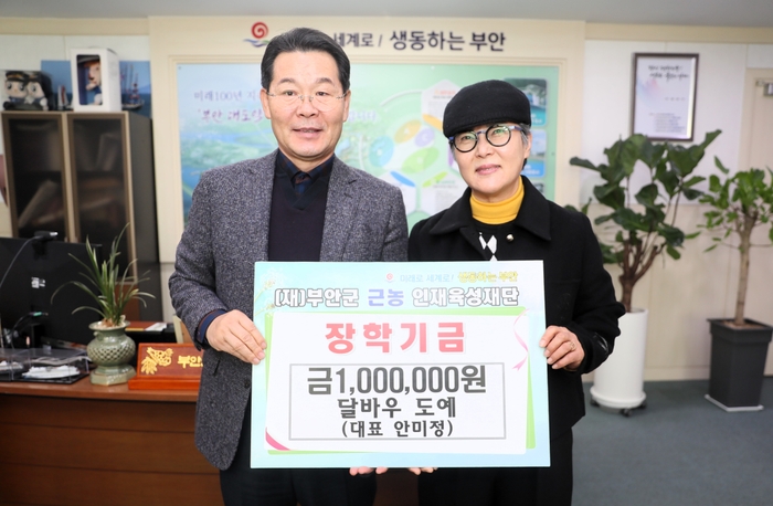 권익현 부안군 근농인재육성재단 이사장은 “매년 장학금을 기부해 주셔서 매우 감사드리고 기탁을 이행한다는 마음이 감동이고 존경스럽다”며 “부안군 학생들이 학업에 전념할 수 있도록 재단 운영에 힘쓰겠다”고 고마움을 전했다.