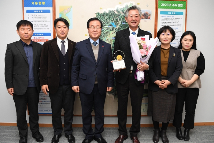 (재)완주군인재육성재단이 10년 가까이 총 1억2,000만 원을 기탁한 정석케미칼 주식회사(대표 김용현)에 감사패를 전달했다.