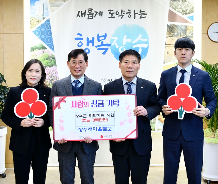 장수새마을금고(이사장 주귀봉)는 27일 장수군청을 방문해 장수군 취약청소년을 위한 지원에 사용해달라며 성금 300만원을 기탁했다.