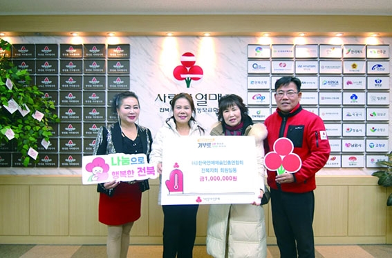 전북연예예술인협회(회장 김덕진)가 연말을 맞이하여 사랑의 열매에 나눔으로 행복한 기부를 실시했다. 전북연예예술인의 가수등이 중심이 되어 불우이웃돕기 송년의 밤을 실시하여 수익금을 기부한 것이다.