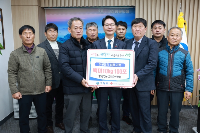 쌀 전업농 고창군연합회에서 12일 관내 저소득 가구 및 사회복지시설 등에 백미10㎏ 100포(300만원 상당)를 기탁했다.