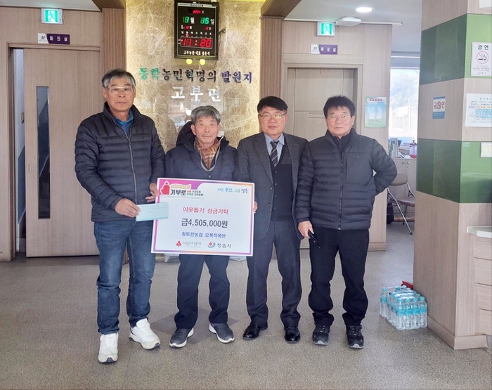 지난 15일 황토현농협 오복작목반(회장 이조형)은 지역의 어려운 이웃들을 위해 써달라며 고부면 행정복지센터에 성금 400만원을 전달했다.