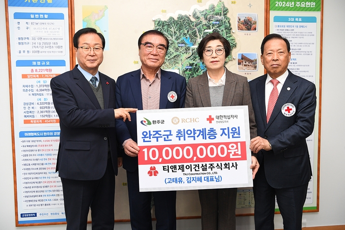 유희태 완주군수는 “어려운 이웃을 위해 나눔을 실천하는 ㈜티앤제이건설에 감사하다”며, “따뜻한 마음을 담아 관내 어려운 이웃들에게 소중하게 전달하겠다”고 감사 인사를 전했다.