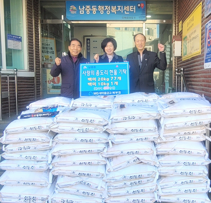 익산시 남중동 북부새마을금고(이사장 박성근)는 25일 남중동 행정복지센터를 방문해 백미 20kg 77포(400만 원 상당)를 기탁했다.