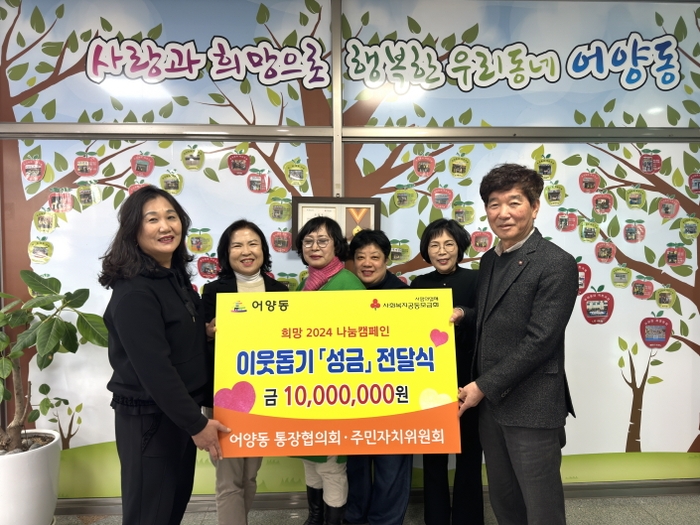 익산시 어양동 통장협의회(회장 원영이)와 주민자치위원회(위원장 황상묵)가 희망 2024 나눔캠페인 이웃돕기에 성금 1,000만 원을 기탁해 훈훈한 미담이 되고 있다.