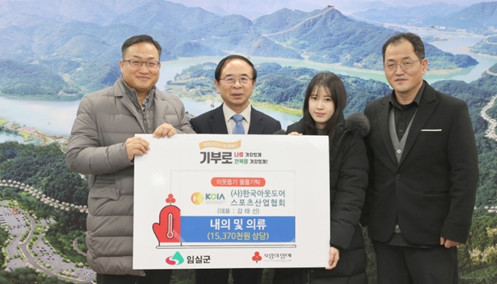 (사)한국아웃도어스포츠산업협회(회장 강태선)가 지난 24일 전북사회복지공동모금회를 통해 관내 저소득 취약계층에 도움을 주기 위해 임실군에 내의 및 의류 440점(15,370천원 상당)을 기탁했다.