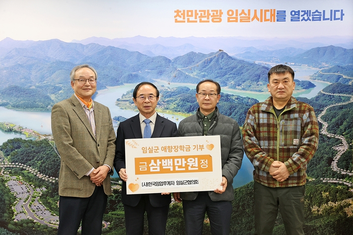 (사)한국임업후계자 임실군협의회(회장 이동환)가 지난 24일 임실군을 방문해 이사장인 심 민 군수에게 장학금 300만원을 기탁했다.