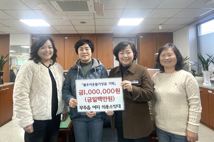 무주군에 따르면 무주읍 여자의용소방대가 지난 24일 무주읍행정복지센터를 찾아 성금 1백만원을 기탁했다.