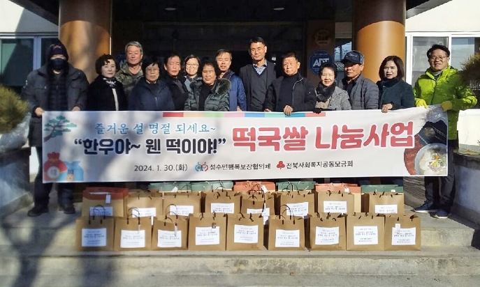 이번 한우, 떡국쌀 나눔 사업은 성수면 취약계층을 대상으로 협의체 위원들이 한우 및 떡국쌀을 직접 준비하고 대상 가구를 직접 발굴 및 방문하여 전달하는 사업으로 전라북도 사회복지 공동모금회의 지원을 받아 시행했다.