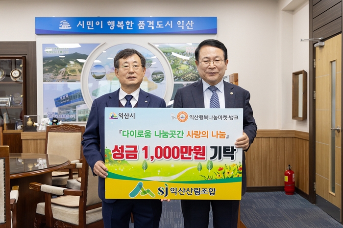 정헌율 익산시장은 "어려운 이웃을 위해 온정의 손길을 베풀어 주신 익산산림조합과 조합원 여러분께 감사드린다"며 "소중한 성금은 꼭 필요한 분들에게 도움이 되도록 잘 사용하겠다"고 전했다.