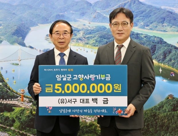 임실군에 고향사랑기부제 고액 기부가 계속되고 있다. 지난 7일에 지사면 번영회 변현섭 총무의 아들인 변재승 씨가 5백만원을 기탁 한 데 이어, 14일에는 (유)서구 백 금 대표가 5백만원을 기탁했다.