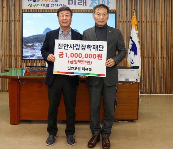 진안고원 치유숲(부센터장 김종환)이 14일 진안사랑장학재단(이사장 전춘성)에 장학금 1백만원을 기부했다.