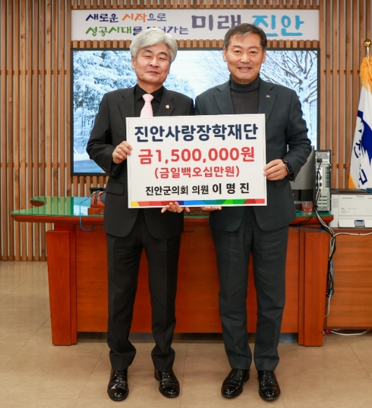 진안군의회 이명진 의원이 27일 진안사랑장학재단(이사장 전춘성)에 장학금 150만원을 기탁했다.