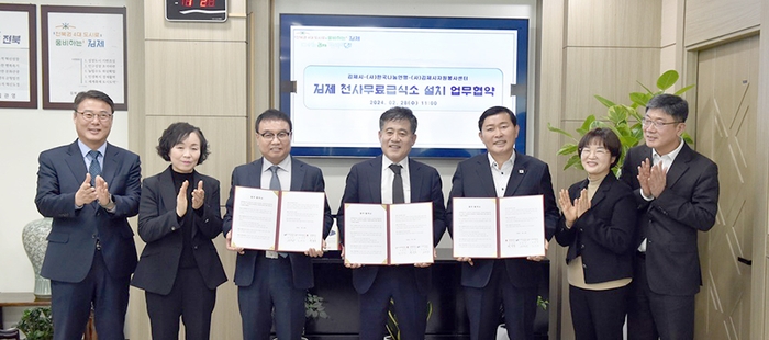 김제시(시장 정성주)는 사단법인 한국나눔연맹(사무총장 안천웅), 사단법인 김제시자원봉사센터(이사장 김윤권)와 함께 28일 김제천사무료급식소 설치를 위한 업무협약을 체결했다고 밝혔다.