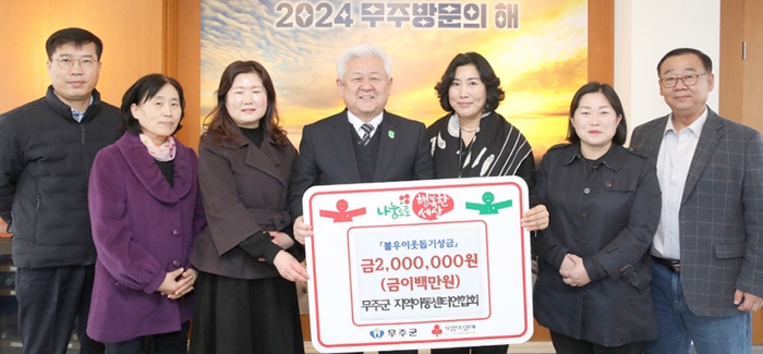 같은 날 무주군 지역아동센터연합회 소속 센터장들도 이웃돕기 성금으로 2백만 원을 기탁했다. 송희진 회장은 “지역사회 어려운 이웃과 아동들을 돕는 데 조금이라도 보탬이 되고 싶어 마음을 모았다”라며 “새봄을 맞아 싹트고 있는 희망이 군민 서로가 서로를 챙기는 마음을 통해 더 활짝 피어나기를 바란다”라고 말했다.