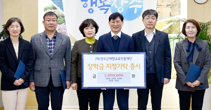 이날 기탁에 참여한 승진자들은 “장수군 청소년들이 글로벌 인재로 성장해 지역발전의 밑거름이 될 수 있도록 기탁에 동참하게 됐다”며 “어려운 여건 속에서도 꿋꿋하게 공부하는 학생들이 용기를 잃지 않길 바란다”고 전했다.