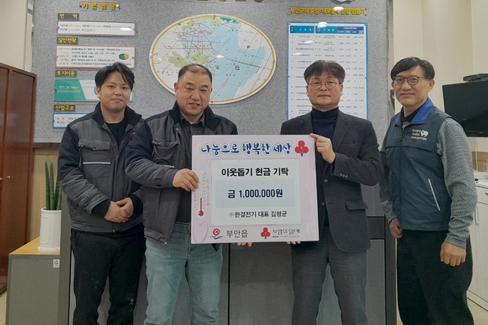 ㈜한결전기(대표 김형균)은 지난 4일 부안군 부안읍을 방문해 취약계층을 위해 사용해 달라며 성금 100만원을 기탁했다.