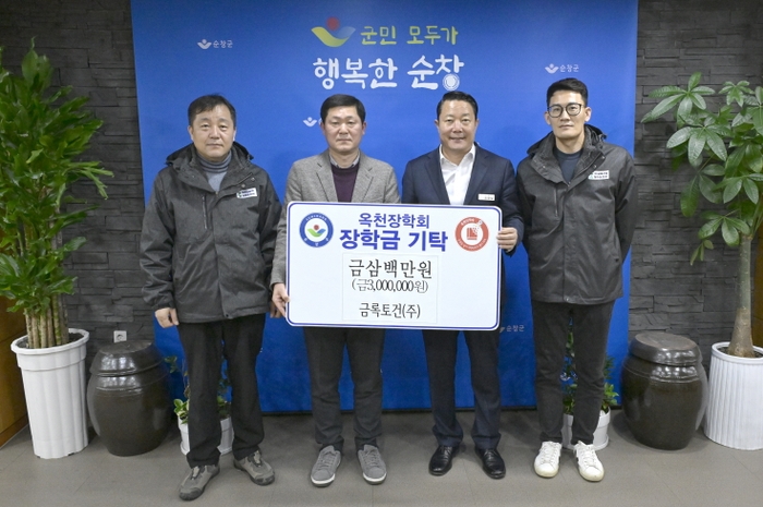 순창군은 5일 금록토건(대표 서철수)에서 순창군옥천장학회(이사장 순창군수 최영일)에 장학금 300만원을 기탁했다고 밝혔다.